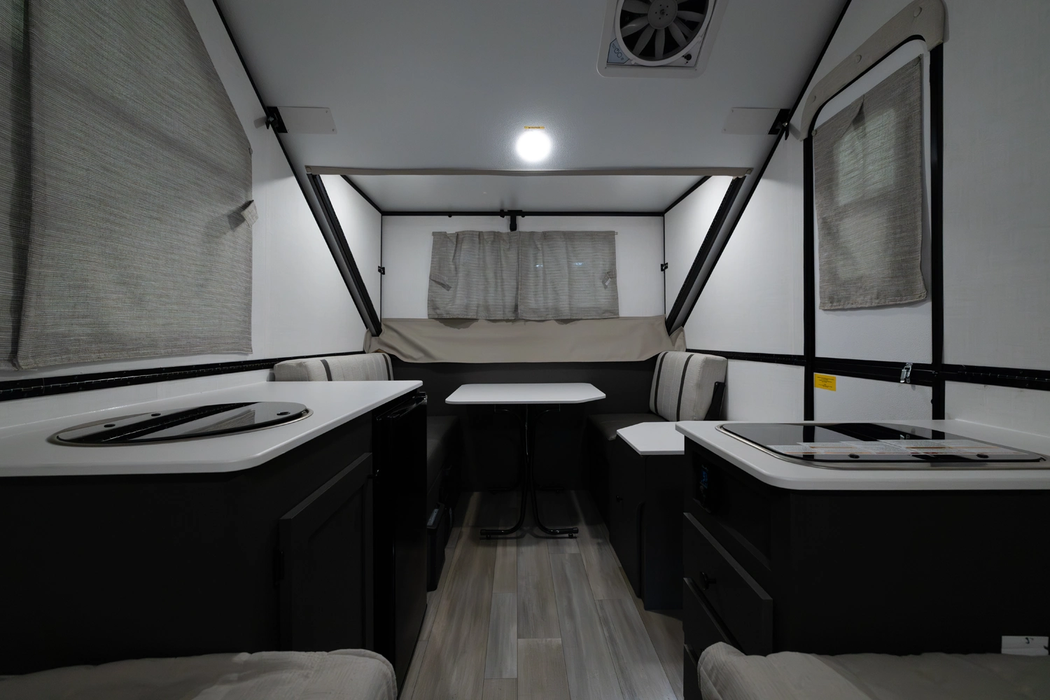 EMBRACING THE PINNACLE OF VERSATILITY. The Flagstaff Hardside Series emerges as a harmonious feeling of a travel trailer's exterior and the effortless towing convenience of a tent camper. Within this remarkable synthesis, every model features both an air conditioner and a furnace, ensuring your inner sanctum remains cozy, regardless of external conditions. The extraordinary speed and simplicity of setup ensures that mere moments after arriving at your chosen campsite, you'll already be immersed in the joys of your camping experience.