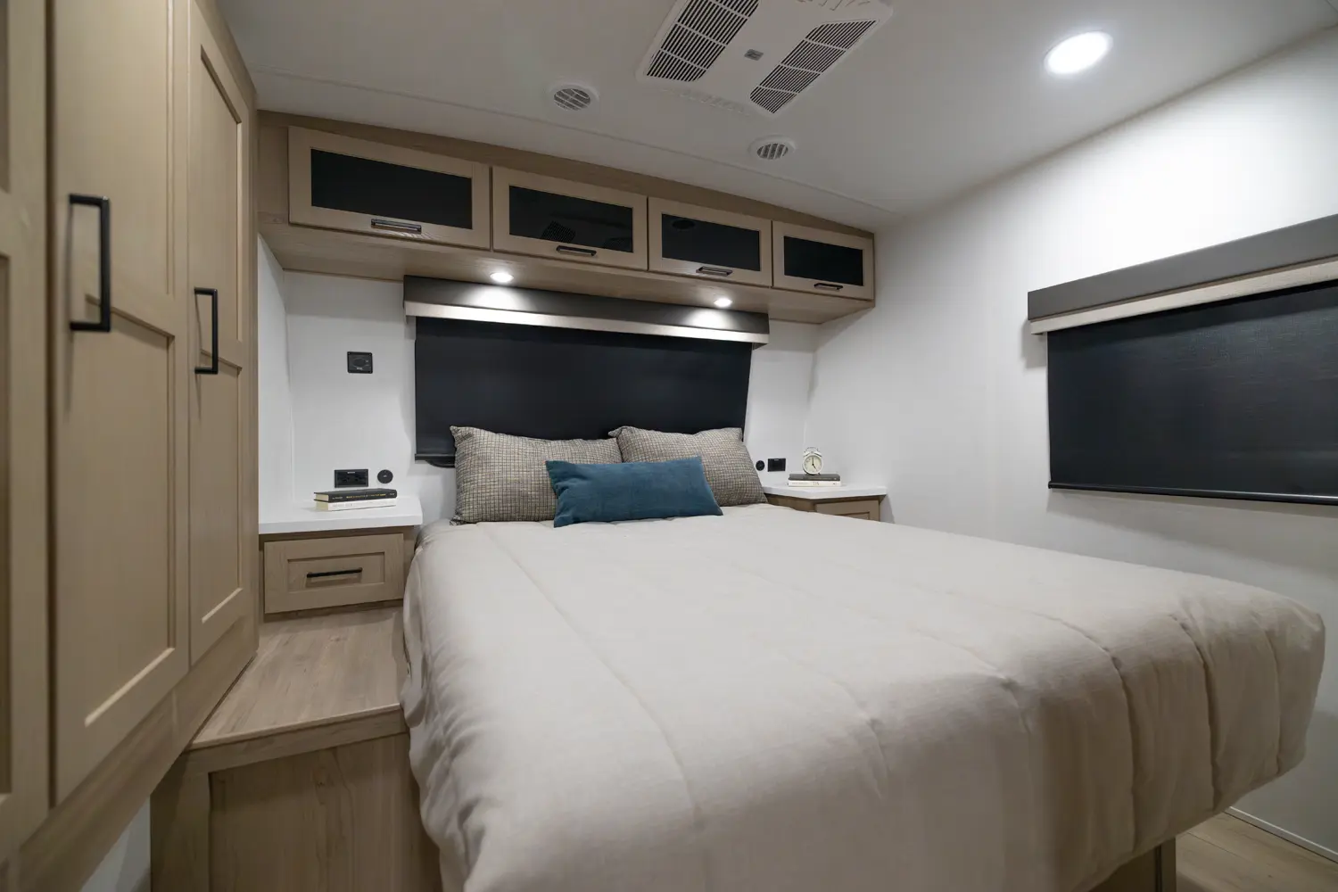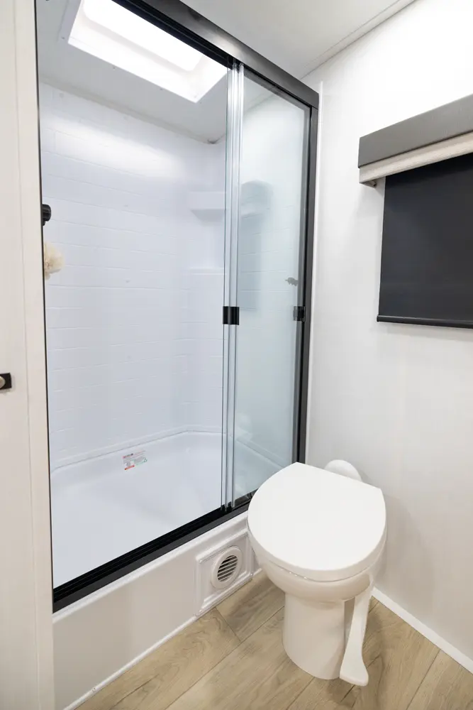 This travel trailer has everything you need and is still under 30'! This unit offers a walk around 60"x 80" queen bed, night stands on either side, and a big wardrobe slide. The 67" theater seating and the 44" dinette slide out giving the kitchen and living room area an open feeling. The rear bathroom and front bedroom are equipped with big 36" sliding doors allowing for comfortable entry and exit.