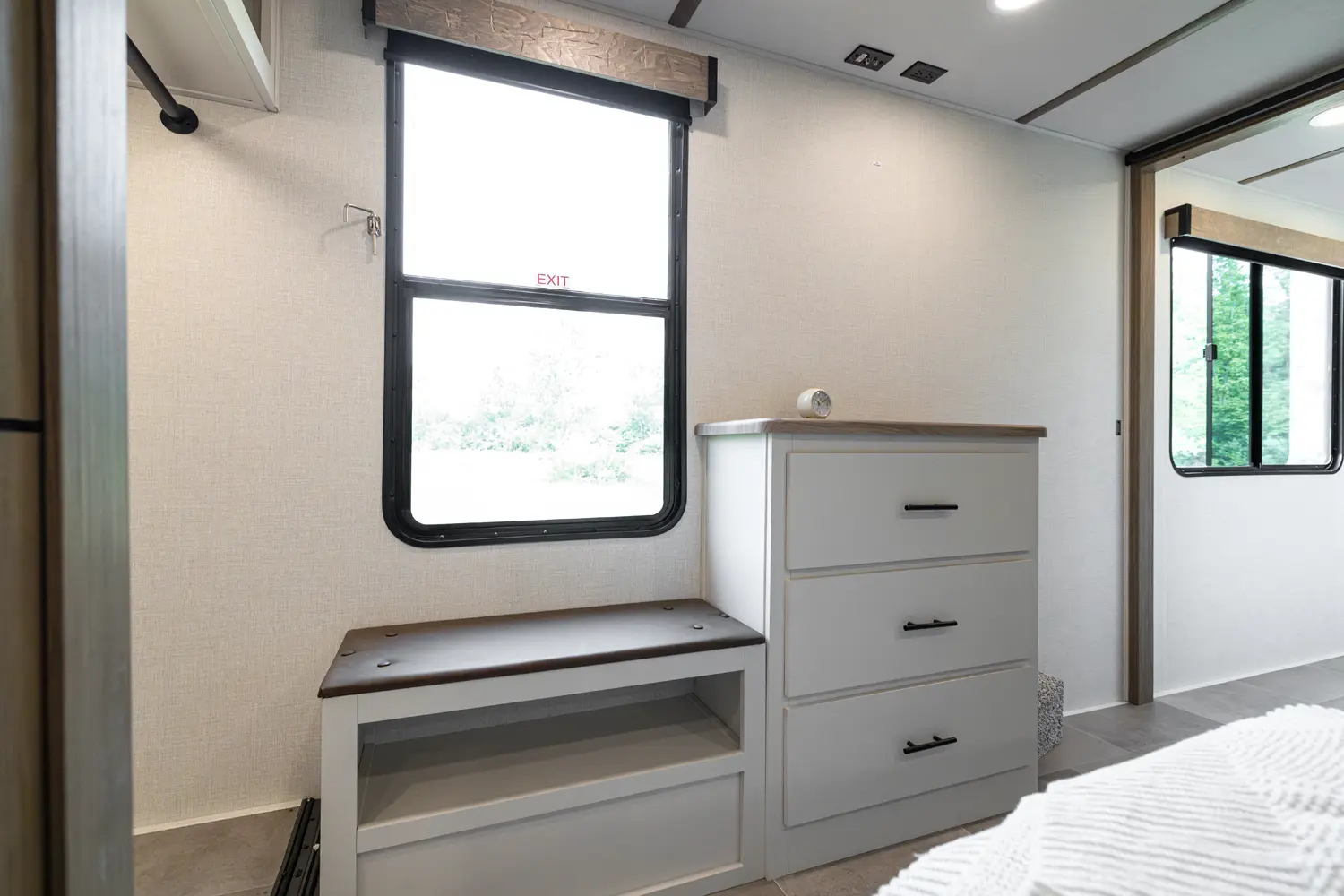 • 110 Outlet & 12V Charging Ports Beside Bed